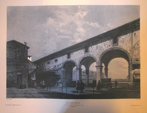 LE PONT VIEUX. La galerie couverte et les boutiques des orfevres. A Firenze. Riproduzione tratta dall'album "La Toscane" di André Durand.