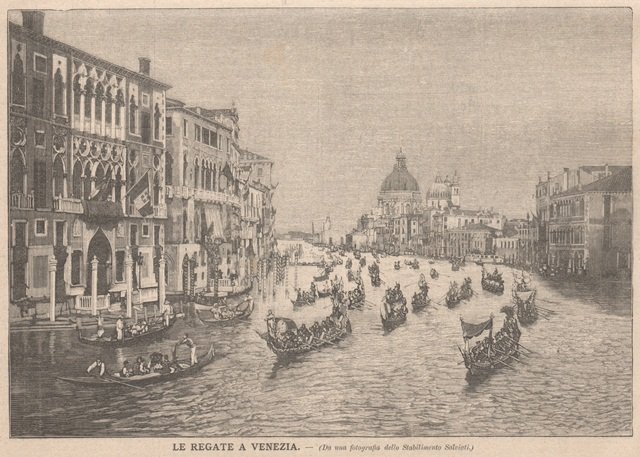 Veduta generale delle gare nell’agosto 1892, vinte dai fratelli Zanellato. Testo al retro