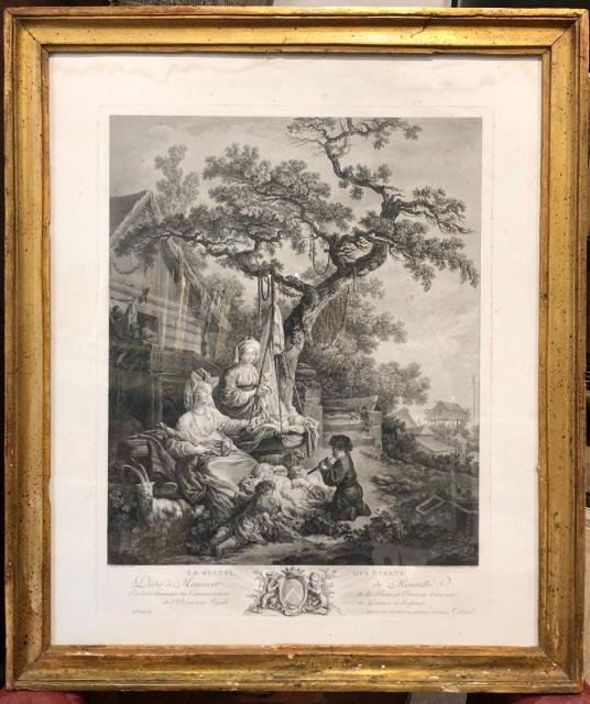 Seconda metà XVIII secolo, 1780 circa. Dedié à Monsieur de Montullé. Paris, Chez. Da un dipinto di J. B. Le Prince, incisione in rame all'acquaforte e bulino, cm 38 x 49,5 (alla lastra), cm 47 x 56,5 (al foglio). Bella scena dal carattere gioioso, narrativo e descrittivo con titolo e stemma centrale di dedica al margine inferiore. Jean baptiste Tilliard (1740 -1813). Un leggero alone si distende lungo il margine bianco superiore, alcuni punti di ossidazione sulla parte destra, ben impressa la battuta della lastra, ottima impressione, buono lo stato di conservazione. Con coeva cornice oro.