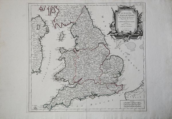 Dettagliata mappa delle isole britanniche, che comprende le coste della Francia e dell'Irlanda. Carta geografica curata da don Paolo Santini e dal fratello Francesco per il loro prestigioso Atlas universel dressé sur les meilleures cartes modernes, sontuoso atlante composto da mappe che rielaborano la più aggiornata cartografia francese in una veste veneta. Le carte sono prese dai migliori geografi del suo tempo, D’Anville, Bellin, Bonne, Borgomo, Boscovich, Clarici, Delisle, Jaillot, Janvier, Robert de Vaugondy. ' In effetti nelle carte dei Santini, vengono mescolati termini francesi con italiani, ma sono offerte con una grazia compositiva ed incisoria loro caratteristiche: una toponomastica non fitta, scritta in grande e ben leggibile. L’atlante di Santini non ebbe una grande fortuna editoriale e uscì in poche copie: venne quindi ristampato dai Remondini, che avevano acquistato dal Santini nel 1781 le incisioni in rame. Alle carte di Paolo Santini, datate fra il 1774 e il 1780, i Remondini aggiunsero diverse altre carte, datate fra il 1782 e il 1784: fra queste, nel secondo volume, la grande carte ripiegata dell’Italia, la Repubblica di Genova, la Palestina, le grandi carte dell’Africa. Paolo Santini (1729, Venezia–1793, Belluno), sacerdote cattolico presso la Chiesa di Santa Maria Formosa a Venezia, docente di disegno alle scuole della città lagunare della Provincia Veneta della Compagnia di Gesù. Santini, cartografo, incisore ed editore, aggiornò e pubblicò le mappe dei geografi e cartografi francesi Gilles Robert de Vaugondy (1688–1766) e Didier Robert de Vaugondy (c. 1723–1786), ispirandosi anche alle opere dei cartografi italiani, innanzitutto a quelle di Giovanni Antonio Rizzi Zannoni (1736–1814). Utilizzando, come modello, le mappe raccolte e pubblicate nel 1752 nell’Atlas Universel di Gilles Robert e Didier Robert de Vaugondy, acquistate a Parigi da suo fratello, Francesco Santini, e le «migliori carte geografiche» dell’epoca, Paolo Santini incise nuove lastre e diede alle stampe a Venezia, nel 1776, l’Atlas Universel dressé sur les meilleures cartes modernes. L’anno successivo, 1777, cedette i diritti di pubblicazione all’editore Giuseppe Remondini (1754–1811) di Bassano del Grappa che ristampò l’«Atlas Universel» in due volumi che raccoglievano complessivamente 123 carte geografiche. Le matrici in rame in possesso dei Santini furono poi acquistate, nel 178, dalla stamperia Remondini. Incisione in rame, coloritura coeva dei contorni, in ottimo stato di conservazione. Bibliografia NMM III, 277; Nordenskiöld 276; Phillips, Atlases 647. Rodolfo Gallo, L'incisione nel '700 a Venezia e a Bassano, in “Ateneo Veneto”, A. CXXXII, v. 128, pp. 153-214. Finely and crisply engraved map of British Isles including the coasts of France and Ireland. Map compiled by Don Paolo Santini and his brother Francesco, for their prestigious Atlas universel dressé sur les meilleures cartes modernes, a sumptuous Atlas composed of maps that rework the most up-to-date French cartography in a Venetian guise. The maps are taken from the best geographers of his time, D'Anville, Bellin, Bonne, Borgomo, Boscovich, Clarici, Delisle, Jaillot, Janvier, Robert de Vaugondy. ' Indeed, in Santini's maps, French terms are mixed with Italian, but they are offered with a compositional and engraving grace that is characteristic of them: an uncluttered toponymy, written large and clearly legible. Santini's Atlas did not have great publishing success and came out in few copies: it was then reprinted by the Remondini, who had purchased the copperplates from Santini in 1781. To Paolo Santini's maps, dated between 1774 and 1780, the Remondini added several other maps, dated between 1782 and 1784: among them, in the second volume, the large folded maps of Italy, the Republic of Genoa, Palestine, and the large maps of Africa. Paolo Santini (1729, Venice-1793, Belluno), Catholic priest at the Church of Santa Maria Formosa in Venice, professor of drawing at schools in the Lagooon city of the Venetian Province of the Society of Jesus. Santini, a cartographer, engraver and publisher, updated and published the maps of French geographers and cartographers Gilles Robert de Vaugondy (1688-1766) and Didier Robert de Vaugondy (c. 1723-1786), also drawing inspiration from the works of Italian cartographers, first and foremost those of Giovanni Antonio Rizzi Zannoni (1736-1814). Using, as a model, the maps collected and published in 1752 in the Atlas Universel by Gilles Robert and Didier Robert de Vaugondy, purchased in Paris by his brother, Francesco Santini, and the "best maps" of the time, Paolo Santini engraved new plates and gave to the presses in Venice, in 1776, the Atlas Universel dressé sur les meilleures cartes modernes. The following year, 1777, he sold the publishing rights to publisher Giuseppe Remondini (1754-1811) of Bassano del Grappa, who reprinted the "Atlas Universel" in two volumes that collected a total of 123 maps. The copper plates in the Santini's possession were later purchased, in 1781, by the Remondini printing house. Copperplate engraving, original outline coloring, in excellent condition. Bibliografia NMM III, 277; Nordenskiöld 276; Phillips, Atlases 647. Rodolfo Gallo, L'incisione nel '700 a Venezia e a Bassano, in “Ateneo Veneto”, A. CXXXII, v. 128, pp. 153-214. Cfr.
