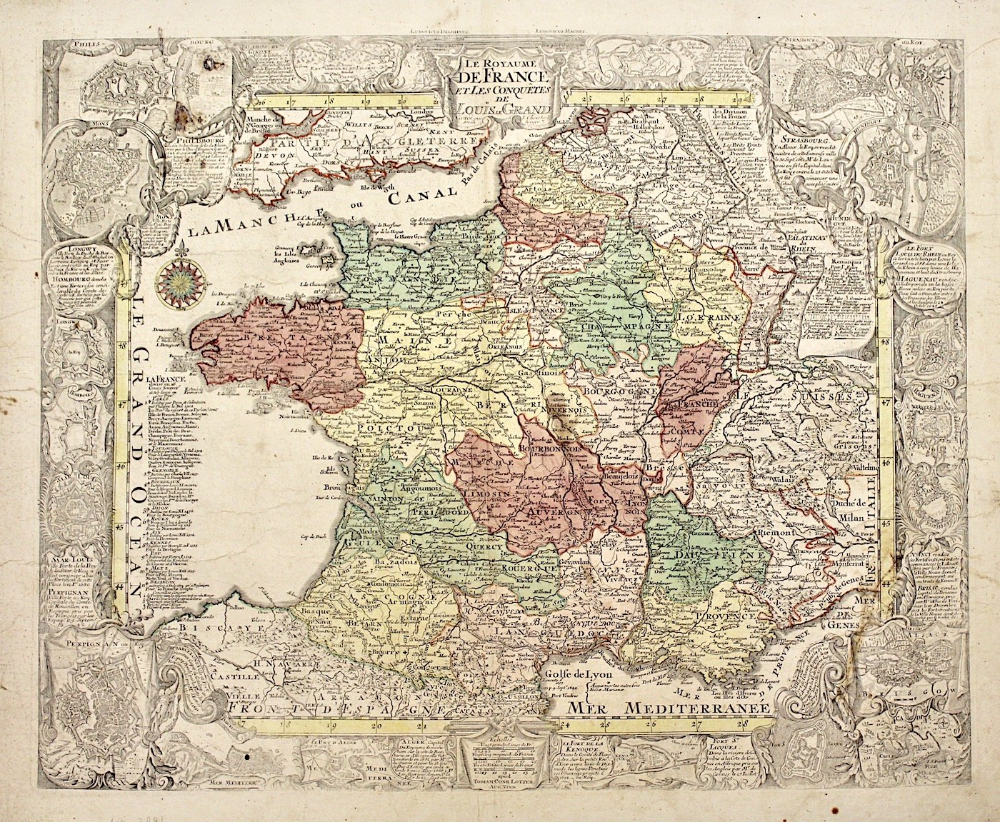 Incisione in rame, colorata d'epoca, 470x575. Da "Atlas novus" o "Grosser Atlas". Ben conservata, qualche macchia, rinforzi ai margini.