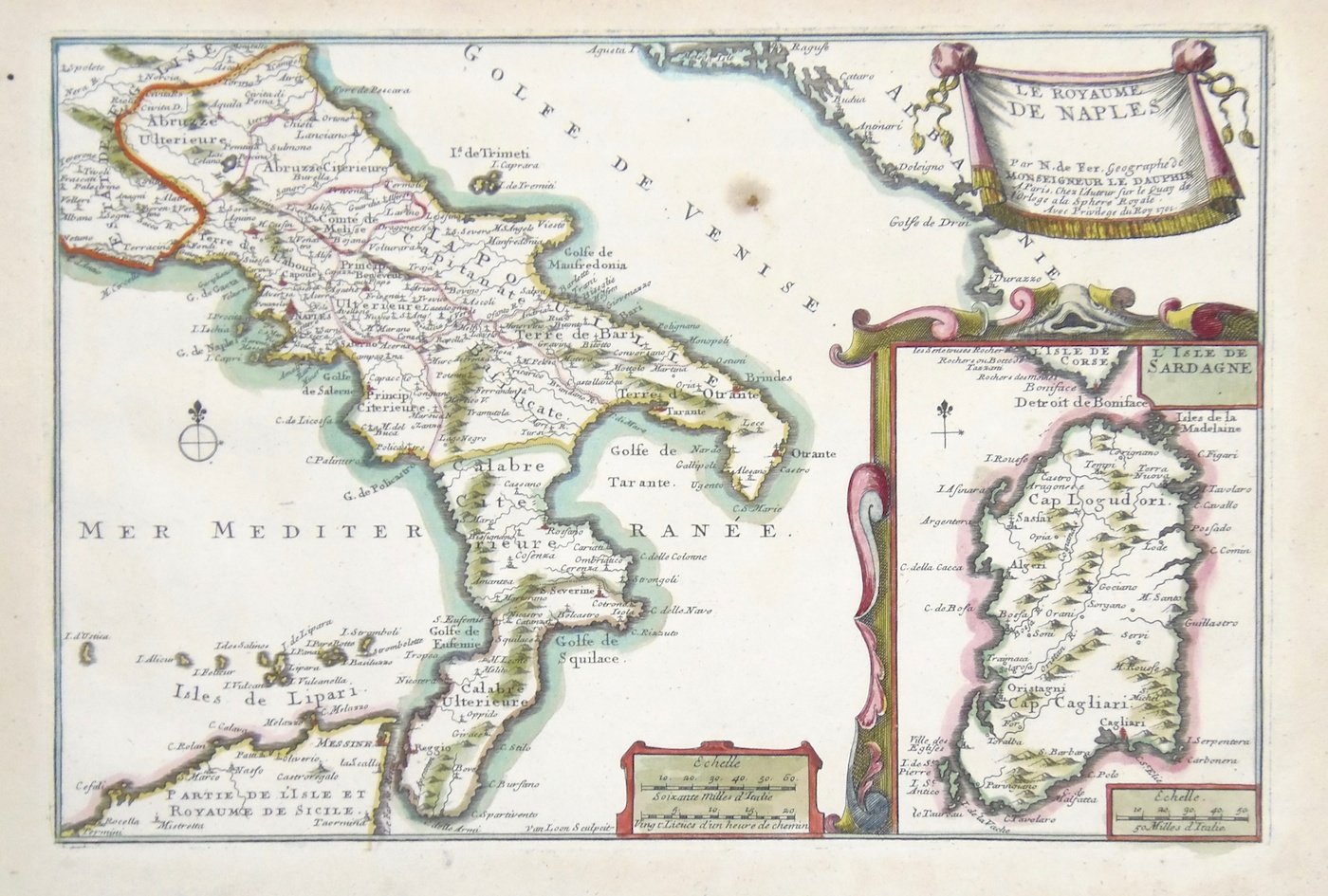 Incisione in rame, coloritura d'epoca con ritocchi recenti, 227x338. Bell'esemplare su carta leggermente ingiallita.