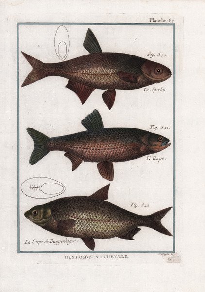 Tavola tratta da ' Dictionnaire de toutes les especes de pêches. ' - A Padoue, 1797, parte della ' Encyclopédie méthodique. - Nouvele édition enrichie de remarques dédiée à la sérénissime Republique de Venise. - A Padoue, 1784-1817, pubblicata dalla Tipografia del Seminario. Le tavole sono curate e incise da Pietro Scattaglia Pietro Scattaglia fu incisore, venditore e miniatore di stampe, attivo a Venezia (Bellini, 1995) con indirizzo ' incisori e miniatori sul Ponte di Rialto. In seguito entrò in società con Innocente Alessandri, di cui era sposato con la sorella, con il nome di "Calcografia Magna". Acquistò le tavole e ripubblicò la Raccolta di Pietro Monaco nel 1772. Incisione in rame, finemente colorata a mano, in ottimo stato di conservazione. Bibliografia Rodolfo Gallo, 'L'incisione nel '700 a Venezia e a Bassano', Venice 1941, pp.47-8; Giorgio Marini, in 'Le collezioni di stampe e di libri di Ambrogio Rosmini', Rovereto 1997, pp. 98. Plate taken from ' Dictionnaire de toutes les especes de pêches. ' - In Padoue, 1797, part of the Encyclopédie méthodique. ' - Nouvele édition enrichie de remarques dédiée à la sérénissime Republique de Venise. - In Padoue, 1784-1817, published by the Tipografia del Seminario. The plates are edited and engraved by Pietro Scattaglia Pietro Scattaglia was an engraver, seller and miniaturist of prints, active in Venice (Bellini, 1995) with address ' incisori e miniatori sul Ponte di Rialto. He later entered into partnership with Innocente Alessandri, whose sister he was married to, under the name "Calcografia Magna". ' Acquired plates and re-issued Pietro Monaco's Raccolta in 1772. Copperplate engraving, finely hand-colored, in excellent condition. Bibliografia Rodolfo Gallo, 'L'incisione nel '700 a Venezia e a Bassano', Venice 1941, pp.47-8; Giorgio Marini, in 'Le collezioni di stampe e di libri di Ambrogio Rosmini', Rovereto 1997, pp. 98. Cfr.