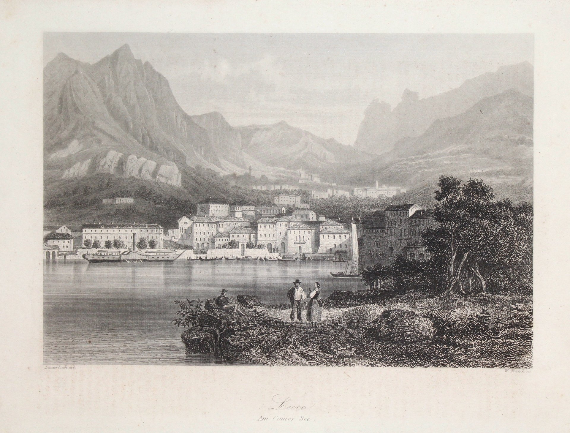 Incisione in acciaio da soggetto di H. Lauterbach, 145x210. Bella veduta della città. Tratta da "Payne's Universum". Buon esemplare con lievi macchie marginali, un po' rifilata in basso (la scritta Am Comer See è leggibile ma lievemente tagliata).