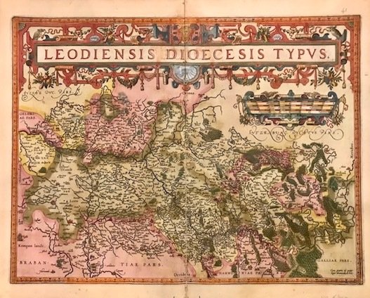 Carta geografica originale (cm. 49,5x38 più ampi margini bianchi) tratta dal ‘Theatrum Orbis Terrarum’. Splendida coloritura antica all’acquarello. Minima mancanza di colore lungo la piegatura centrale, peraltro esemplare in ottimo stato di conservazione. Provenienza: Biblioteca del Castello di Cirey. Van den Broecke, 64.