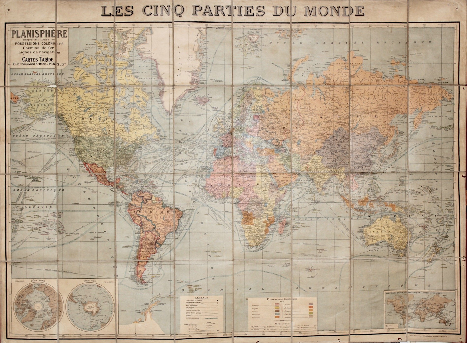 Les cinques parties du monde-Planisphère comprenant toutes les possessions coloniales chemins de fer lignes de navigation