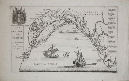 Esemplare tratto dal primo volume del "Nouveau Theatre de l'Italie" pubblicato ad Amsterdam nel 1704/5 e nel 1724, quale integrazione al progetto di Johannes Baleu, iniziato nel 1663, del grande "libro delle città", manchevole delle piante di gran parte della parte settentrionale della penisola.Il Blaeu, durante la sua lunga attività editoriale pubblica tre volumi sulle città italiane. Nel 1663 i primi tre, suddivisi in Stato della Chiesa, Roma e Regno di Napoli e Sicilia. Alla sua morte i suoi eredi danno alla luce altri due volumi datati 1682 incentrati sulle città del Piemonte e della Savoia, poi ristampati da altri editori nel 1693 e 1697. Il francese Pierre Mortier pubblica una ristampa nel 1704/5, intitolata “Nouveau Theatre de l’Italie”.L’opera è in quattro volumi e comprende le lastre del Blaeu, ritoccate e modificate in piccola parte, integrate dall’aggiunta di numerose nuove mappe di proprio disegno, raffiguranti le città della parte settentrionale della penisola, racchiuse nel primo volume dell’opera.L’atlante del Mortier venne pubblicato con testo latino, francese ed olandese. La particolarità che differenzia le due edizioni di Blaeu e Mortier è rappresentata dal fatto che il testo non è al verso della singola mappa (che quindi è bianca nel retro), ma si trova all’inizio di ogni singolo volume. Il grande successo dell’opera diede origine ad un’ulteriore ristampa, praticamente identica, curata da R. Alberts ed edita nel 1724/5.Incisione in rame, in buono stato di conservazione. Bibliografia: Cremonini pp. 83-90. Esemplare tratto dal primo volume del "Nouveau Theatre de l'Italie" pubblicato ad Amsterdam nel 1704/5 e nel 1724, quale integrazione al progetto di Johannes Baleu, iniziato nel 1663, del grande "libro delle città", manchevole delle piante di gran parte della parte settentrionale della penisola.Il Blaeu, durante la sua lunga attività editoriale pubblica tre volumi sulle città italiane. Nel 1663 i primi tre, suddivisi in Stato della Chiesa, Roma e Regno di Napoli e Sicilia. Alla sua morte i suoi eredi danno alla luce altri due volumi datati 1682 incentrati sulle città del Piemonte e della Savoia, poi ristampati da altri editori nel 1693 e 1697. Il francese Pierre Mortier pubblica una ristampa nel 1704/5, intitolata “Nouveau Theatre de l’Italie”.L’opera è in quattro volumi e comprende le lastre del Blaeu, ritoccate e modificate in piccola parte, integrate dall’aggiunta di numerose nuove mappe di proprio disegno, raffiguranti le città della parte settentrionale della penisola, racchiuse nel primo volume dell’opera.L’atlante del Mortier venne pubblicato con testo latino, francese ed olandese. La particolarità che differenzia le due edizioni di Blaeu e Mortier è rappresentata dal fatto che il testo non è al verso della singola mappa (che quindi è bianca nel retro), ma si trova all’inizio di ogni singolo volume. Il grande successo dell’opera diede origine ad un’ulteriore ristampa, praticamente identica, curata da R. Alberts ed edita nel 1724/5.Incisione in rame, in buono stato di conservazione. Bibliografia: Cremonini pp. 83-90. Cfr.