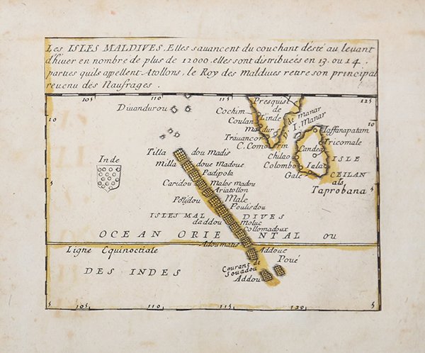 Acquaforte, 1656 circa, con coloritura coeva dei contorni, in buone condizioni.Esemplare del secondo stato di due, con l’imprint di Jacques Lagniet e la data del 1661.La mappa proviene dal rarissimo foglio intitolato “L’Asie par P. Du Val Geographe du Roy”, dal quale è stato ritagliato all’epoca - come anche certificato dalle antiche iscrizioni a inchiostro su alcune delle mappe - venendo applicato su un supporto di carta contemporanea, a formare un piccolo atlante in-sedicesimo oblungo.Secondo Philip Burden, lo scopo di questa rara curiosità cartografica di Pierre Duval non è noto. Fa parte di un insieme di quattro tavole raffiguranti i continenti. Può essere datato, per motivi cartografici, all’incirca nel 1656.La mappa dell’Asia è stata recentemente descritta da Jason Hubbard: “This miniature map of Japan is on a sheet of maps of Asia. Besides the map of the Asian continent there are 17 detailed maps including Turkey, the Holy Land, Georgia and Arabia. […] This map was issued as a loose sheet of Asia maps; similar maps are known for Africa, America and Europe” (cfr. Japoniae Insulae, The Mapping of Japan, p. 201).Richard Betz descrive 3 stati del foglio dell’Africa: senza la data, con l’imprint di Jacques Lagniet e la data del 1661, e con tracce di cancellazione sul suo indirizzo; secondo Hubbard il terzo stato della mappa dell'Asia può essere solo congetturato.È nota solo una copia del primo stato del foglio dell’Asia, venduta alla Old World Auctions (vendita n. 137, 14 settembre 2011) mentre sono conosciuti 5 esemplari del secondo stato (due alla Bibliotheque National de France, Bedburg-Hau Antiquariat Haas, e in due collezioni private a Kyoto e Londra). Etching, circa 1656, with contemporary outline colour, good condition.Example of the second state, with the imprint of Jacques Lagniet and the date 1661.The map comes from the very rare sheet entitled “L’Asie Par le Sieur Du Val Geographe Ord. du Roy”, from which it was cut at the time and laid down on contemporary laid paper support, to form a small atlas, as certified by the ancient ink inscriptions on some of the maps.According with Philip Burden “The purpose of this rare curiosity by Pierre Duval is not known. It forms part of a set of the four known continents. It can be dated to apporximately 1656 […] The second state bears the additional imprint of Jacques Lagniet and the date 1661” (cf. Burden, The Mapping of North America, pp. 417-418, n. 322). The map of Asia is recently described by Jason Hubbard: “This miniature map of Japan is on a sheet of maps of Asia. Besides the map of the Asian continent there are 17 detailed maps including Turkey, the Holy Land, Georgia and Arabia. […] This map was issued as a loose sheet of Asia maps; similar maps are known for Africa, America and Europe” (cf. Japoniae Insulae, The Mapping of Japan, p. 201).Richard Betz describes 3 states of this broadsheet: without the date, with the imprint of Jacques Lagniet and the date 1661, and with traces of erasure on his address, but according Hubbard the third state of the map of Asia is only an assumption.Only one copy of the first state of state of the broadsheet is known, sold at the Old World Auctions (sale #137, september 14, 2011) while 5 copies of the second state are known (two at the Bibliotheque National de France, Bedburg-Hau Antiquariat Haas, private collections in Kyoto and London). Cfr. J. Hubbard, Japoniae Insulae. The Mapping of Japan, pp. 199-201, n. 28; cf. Burden, The Mapping of America, n. 322, II/II; cf. Pastoureau (1984) p. 136; cf. Betz, The Mapping of Africa, pp. 294, 295, n. 85.