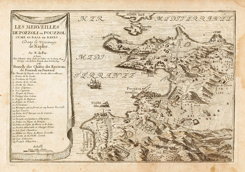 Carta rappresentante la baia e i dintorni di Pozzuoli. Riquadro al lato sx. con rimandi da 1 a 24, dei luoghi caratteristici.