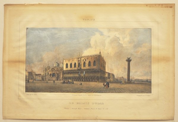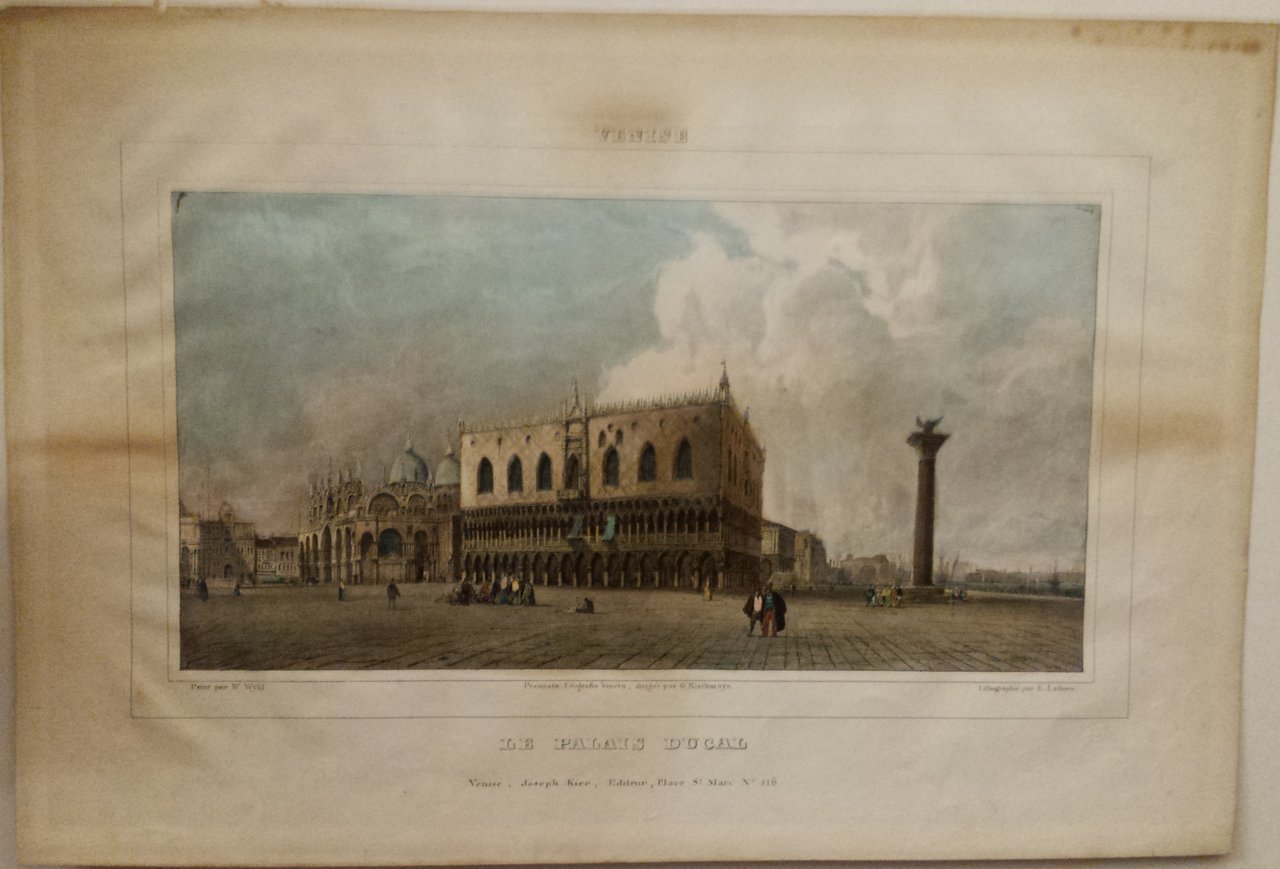 Litografia 29 x 43 cm. Bella acquarellatura, probabilmente d'epoca. Proveniente da: "Album Venitien: compose de douze vues lithographiees par W. Wyld & E. Lessore. Venise: J. Kier, 1837". Wyld William (1806-1886). Lessore Emile (1805-1876)