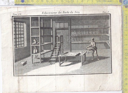 Litografia - Educazione dei bachi da seta - Tav I - .XIX Secolo | Stampe |