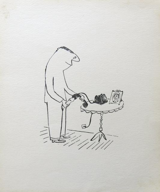 Senza Autore e senza indicazioni tipografiche (Francia, 1940 circa). In 8vo, cartella in cartoncino turchese con piccola plancetta in carta bianca ai piatti, all’interno due fogli rip., su uno dei quali è stampato il titolo, riportato su una piccola plancetta stampata in b/n, e sull’altro è riportata la “giustificazione della tiratura”, in cui si dice che di questo album, di cui sono stati stampati 260 esemplari, costituenti l’edizione originale e ripartiti in certo modo (nel ns. manca il numero di esemplare), comprende 20 disegni. Pochette completa dei 20 disegni a carattere erotico – ironico caricaturesco, tutti finemente stilizzati in b/n. Divertente e molto buono.