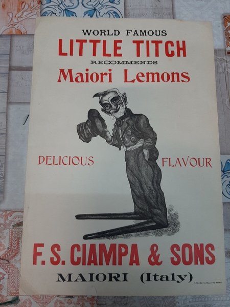 cm. 35,5x24,5 litografata a due colori raffigurante probabilmente immagine caricaturale del titolare della ditta Ciampa di Maiori.