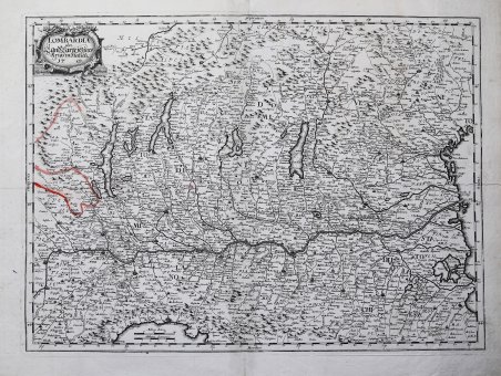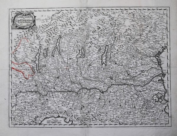 Rarissima carta della Lombardia, pubblicata dagli eredi di Johannes Hoffman, attivi a Norimberga agli inizi del sec. XVIII.La carta fu pubblicata dagli eredi Hoffmann, dal momento che J. Hoffmann, l'editore di Norimberga, era morto nel 1698, mentre la lastra reca la data 1701, nel cartiglio col titolo.Poco o nulla è noto di questa carta del territorio lombardo, sconosciuta a tutti i repertori, notano Davoli- Sanfelici- Zanasi, gli unici a descriverla: "Non abbiamo trovato descrizione della carta, veramente molto rara, nei repertori da noi consultati [â¦] Dal punto di vista cartografico ripete correttamente quanto appare già nelle carte precedenti e anche per il territorio estense non aggiunge particolarità di rilievo. Essa è meno elegante delle coeve cvarte olandesi e francesi, ma rsppresenta un esempio importante della produzione dei centri minori."Incisione su rame, parziale sottolineautura in rosso dei confini sul lato destro della mappa, in ottimo stato di conservazione.