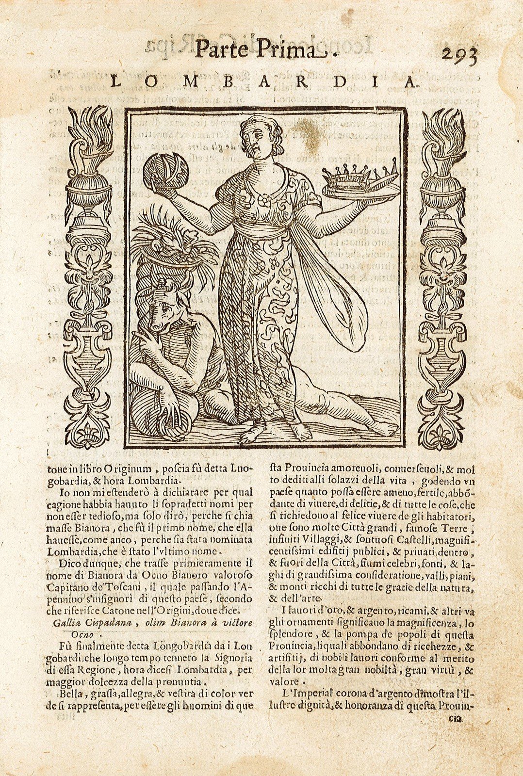 Raffigurazione allegorica della Lombardia tratta dall’opera "Nova Iconologia di Cesare Ripa Perugino Cavalier de SS. Mauritio, et Lazzaro." Padova, Pier Paolo Tozzi, 1618