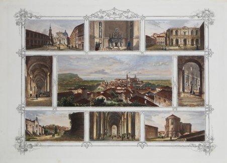 Veduta tratta dal celebre Letture di Famiglia Opera Illustrata con incisioni in acciaio che si pubblica dalla sezione Letterario Artistica del Lloyd Austriaco, edito a Trieste dal 1852 al 1862. Il Lloyd Triestino è la più antica società di navigazione italiana ed una delle più antiche del mondo. Fu fondato nel 1836 con il nome di Lloyd austriaco di assicurazione, essendo Trieste era ancora sotto l’Impero Austro-Ungarico. ' I primi passi della Compagnia vennero accompagnati dalla pubblicazione del Giornale del Lloyd che riportava notizie di carattere marittimo e commerciale. Questa sezione disponeva di una propria moderna tipografia, che ha curato la pubblicazione fino alla sua cessazione avvenuta nel 1931. Il 21 giugno 1849 il Lloyd istituì ufficialmente una “Sezione letterario-artistica” contribuendo notevolmente alla diffusione e allo sviluppo della cultura italiana a Trieste e in Istria. Tra le iniziative di maggior rilievo editoriale ricordiamo per le pubblicazioni tecniche l’Annuario Marittimo e la Rivista Marittima, per quelle artistico-letterarie le Letture di famiglia, una delle prime se non la prima grande rivista illustrata italiana che annoverò fra i collaboratori: Aleardi, i due Cantù, Maffei, Rosmini, Carcano. Incisione in rame, colorata a mano, in ottimo stato di conservazione. View taken from the famous Letture di Famiglia Opera Illustrata con incisioni in acciaio che si pubblica dalla sezione Letterario Artistica del Lloyd Austriaco, published in Trieste between 1852 to 1862. Lloyd Triestino is the oldest Italian shipping company and one of the oldest in the world. It was founded in 1836 under the name Austrian Insurance Lloyd, as Trieste was still under the Austro-Hungarian Empire. ' The Company's first steps were accompanied by the publication of the Lloyd's Journal, which reported maritime and commercial news. This section had its own modern printing press, which edited the publication until it was discontinued in 1931. On June 21, 1849, Lloyd officially established a "Literary-Artistic Section," contributing greatly to the spread and development of Italian culture in Trieste and Istria. Among the most important editorial initiatives we recall for technical publications the Annuario Marittimo and the Rivista Marittima, for artistic-literary ones the Letture di famiglia, one of the first if not the first great Italian illustrated magazine that counted among its contributors: Aleardi, the two Cantùs, Maffei, Rosmini, Carcano. Copperplate, finely hand coloured, in perfect condition. Cfr.