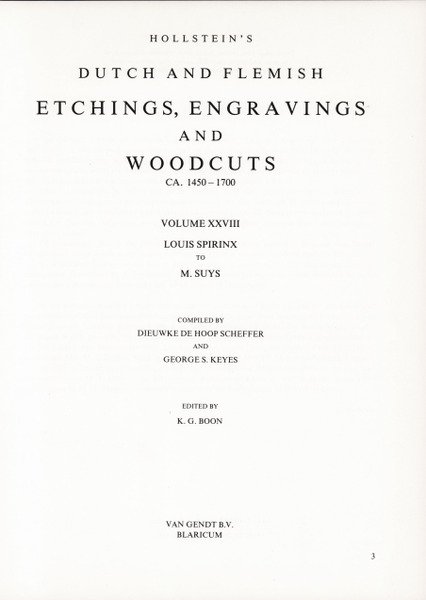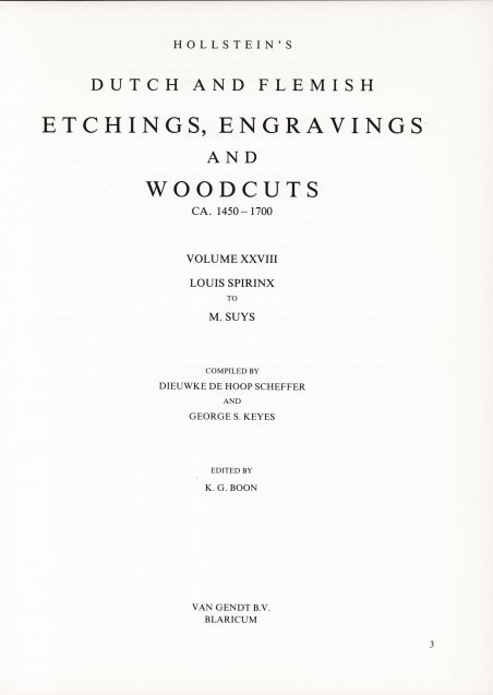 Compilato da Dieuwke De Hoop Scheffer e George S. Keyes; edito da K. G. Boon. Pubblicazione: Blaricum, van Gedt, c1984. Descrizione fisica: 262 p.: ill.; 27 cm. Fa parte di: Hollstein?s Dutch & Flemish etchings, engravings and woodcuts, ca. 1450-1700. Quando il primo volume dell'opera di riferimento sulla stampa olandese e fiamminga, diventata nota come “Hollstein”, fu pubblicato nel 1949, nessuno poteva aspettarsi che ci sarebbero voluti più di 60 anni per arrivare alla fine con la pubblicazione dei volumi di indice. Fu l'iniziativa di Friedrich Wilhelm Hollstein (1888-1957), un commerciante di stampe e banditore berlinese che, costretto dalle circostanze a lasciare la Germania nel 1937, si trasferì ad Amsterdam. Egli calcolò che avrebbe avuto bisogno di 25 volumi per catalogare l'intera produzione di stampe dal 1450 al 1700; quando morì nel 1957, quattordici volumi avevano già visto la luce e, grazie all'intervento del Rijksprentenkabinet, di Karel G. Boon in particolare, degli editori Menno Hertzberger, A.L. van Gendt, Koninklijke Van Poll e Sound & Vision Publishers, che credettero nel progetto e furono pronti a investire in esso, che la serie fu portata avanti fino alla completa realizzazione, avvenuta dopo 53 anni di lavoro e il compimento di 72 volumi (l’ultimo dei quali riporta l’indice dell’opera). Compiled by Dieuwke De Hoop Scheffer and George S. Keyes; edited by K. G. Boon. Publishing: Blaricum, van Gendt, c1984. Physical description: 262 p.: ill.; 27 cm. Taken from the series: Hollstein?s Dutch & Flemish etchings, engravings and woodcuts, ca. 1450-1700. When the first volume of the reference work on Dutch and Flemish printmaking that has become known as “Hollstein” was published in 1949 no one could expect that it should take more than 60 years to reach the end with the publication of index volumes. It was the initiative of Friedrich Wilhelm Hollstein (1888-1957), a Berlin print dealer and auctioneer who was forced by circumstances to leave Germany in 1937 and moved to Amsterdam. He must have been an optimistic man: he calculated that he would need 25 volumes to catalogue the entire production of prints from 1450 to 1700. Fourteen volumes had seen the light of day by the time he died in 1957, and it was due to the intervention of the Rijksprentenkabinet, and of Karel G. Boon in particular, and the book publishers Menno Hertzberger, A.L. van Gendt, Koninklijke Van Poll, and Sound & Vision Publishers, who believed in the project and were prepared to invest in it, that the series was continued. Slowly the standard of the print descriptions improved, and the series was completed thanks to the dedication and involvement of the late Mrs Dieuwke de Hoop Scheffer and her successors. It took another 53 years to finish the series, which now has reached the end in 72 volumes. Cfr.