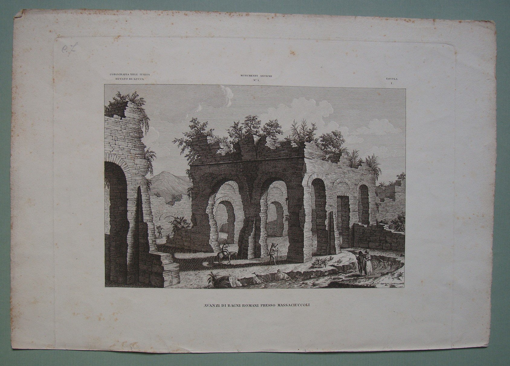 ZUCCAGNI ORLANDINI. Lucca. Avanzi di Bagni Romani presso Massaciuccoli. 1860 ca. Incisione. Cm. 20x28.