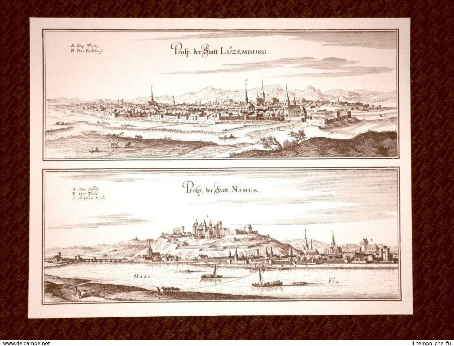 Lussemburgo e Namur Incisione di Merian Matthäus del 1640 Ristampa