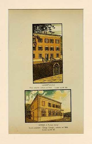 Lussinpiccolo. Asilo infantile istituito nel 1905. Scolari iscritti 180; Levade di Portoie (Istria) Scuola popolare Edvige Conighi istituita nel 1906. Scolari iscritti 125.