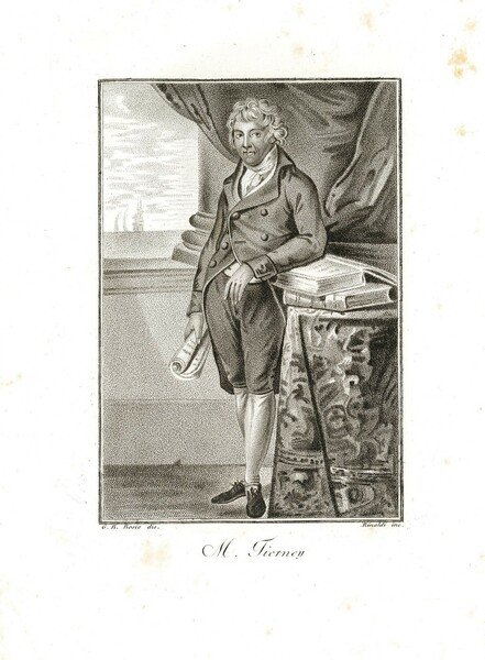 Stampa antica originale raffigurante il ritratto di Tierney membro della Camera dei Comuni d'Inghilterra, in allegato pagina descrittiva. Inserita nell'opera "Serie di vite e ritratti de Famosi Personaggi degli ultimi Tempi" edita da Bettalli e Fanfani a Milano dal 1815 al 1818