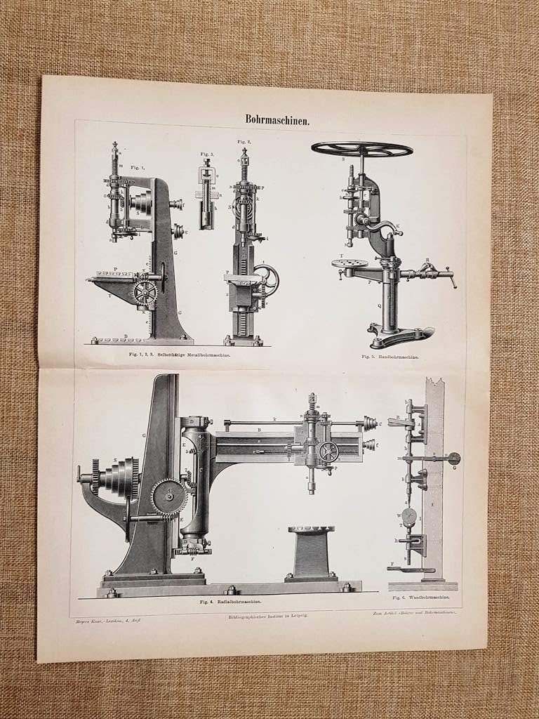Macchine perforatrici Tavola del 1890 Rara tavola estratta da pubblicazione del 1890  Stampata su carta non retroscritta Macchine perforatrici  Dimensioni: Cm 30,00 x 23,00 Codice prodotto: GEO-151