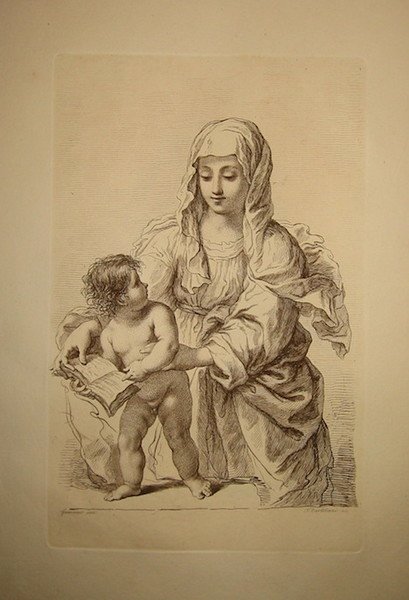 Incisione originale su rame all’acquaforte e bulino (cm. 27,5x17,5 più ampi margini bianchi) da un soggetto di Gio. Francesco Barbieri detto il Guercino. Carta vergellata con filigrana. Ottimo esemplare.