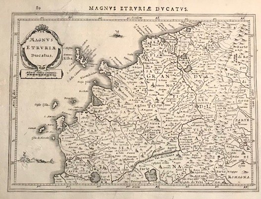 Incisione originale su rame (cm. 24,5x17,8 più ampi margini bianchi) tratta dalla ‘Nova et accurata Italiae hodiernae descriptio.’. Esemplare in ottimo stato di conservazione. Rara.