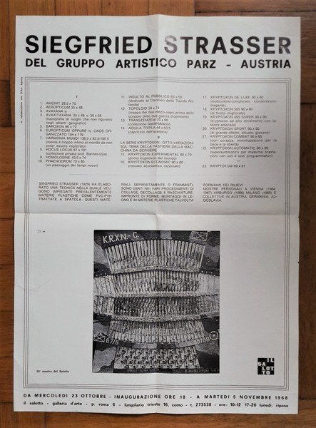 *Manifesto mostra 59° SIEGFRIED STRASSER del Gruppo Artistico Parz - Austria. Galleria Il Salotto - Como. 1968