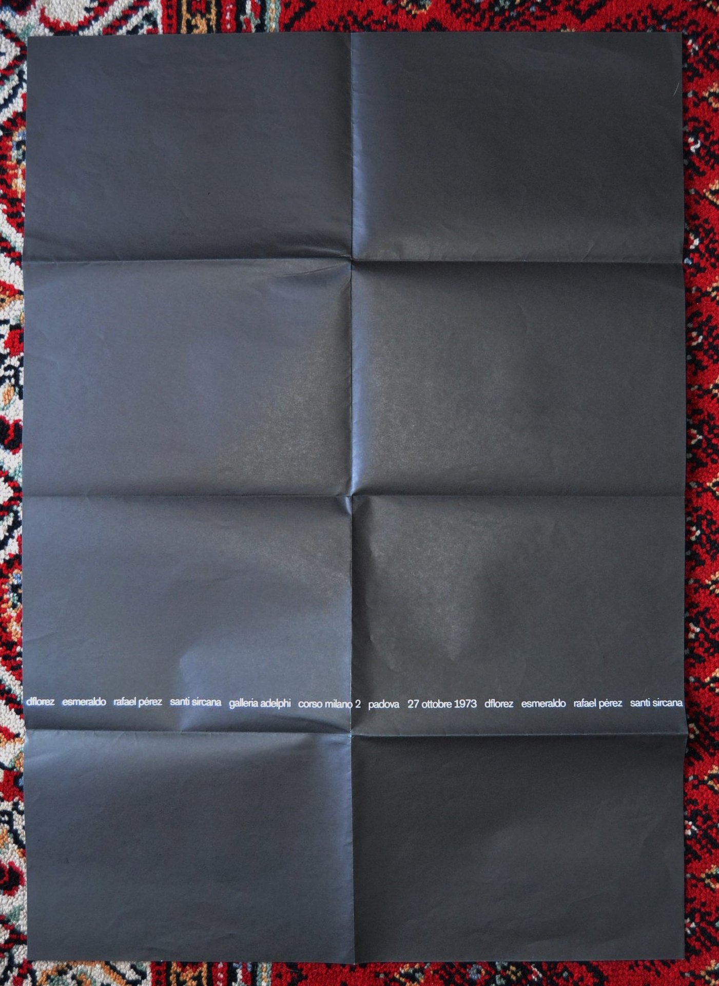 *Manifesto Mostra Dflorez - Esmeraldo - Rafael Pérez - Santi Sircana. Galleria Adelphi PADOVA.27 Ottobre 1973
