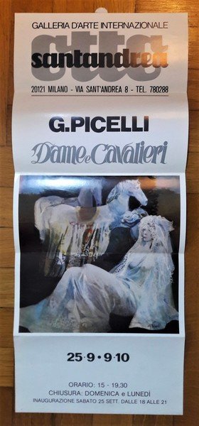 Manifesto mostra GIULIO PICELLI "Dame e cavalieri" Galleria d'arte internazionale Otto Santandrea Milano. 1982