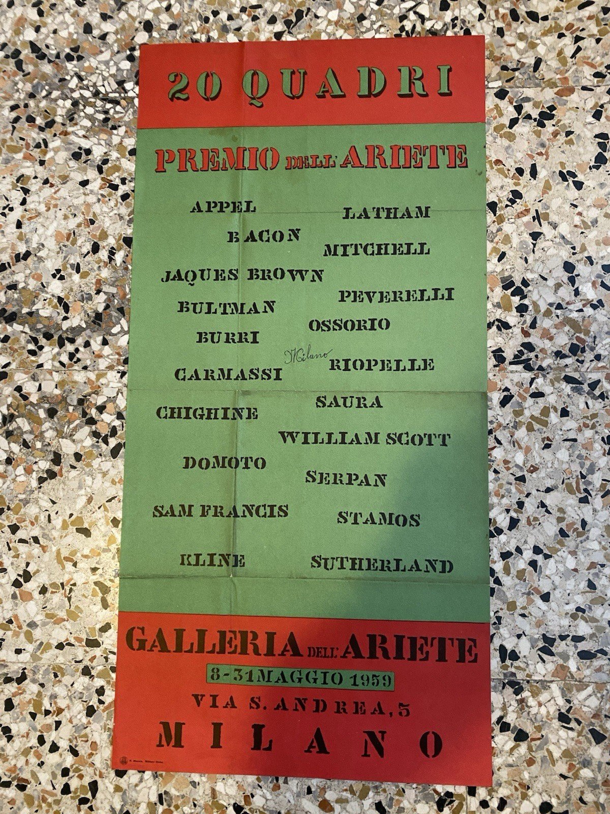 Milano 8-31 Maggio 1959 Tra gli artisti partecipanti citiamo: Appel Lathan Bacon Burri Riopelle San Francis Sutherland Kline... Al centro del manifesto a penna la scritta Milano probabilmente apportata da uno degli artisti partecipanti Lievi piegature Buono stato