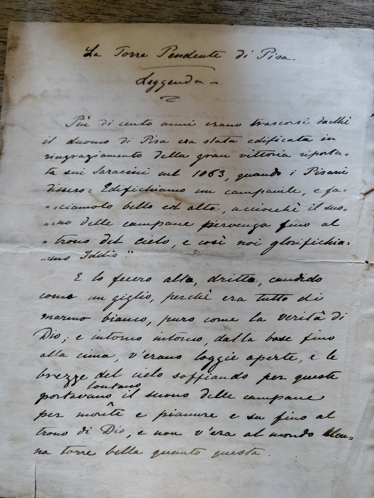 Manoscritto: La Torre Pendente di Pisa. Leggenda