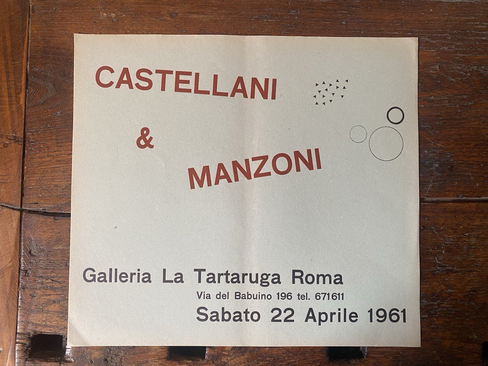 Manzoni Piero Enrico Castellani Manifesto / Poster 30 x 34 cm. Roma 1961