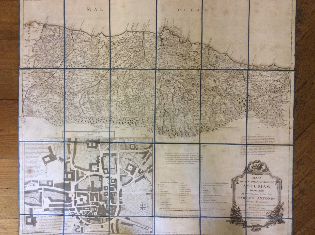 Di questo importante geografo spagnolo (1730-1802), offriamo la carta del Principato delle Asturie, montata su tela, di cm. 69 x 77, suddivisa in 24 riquadri. Cfr. Tooley's Dictionary of Mapmakers, p. 400.Ben conservata.