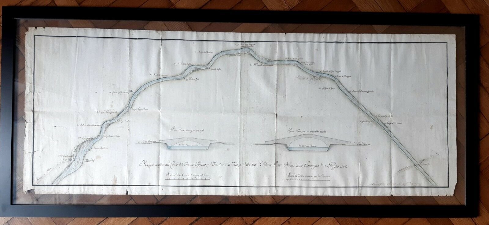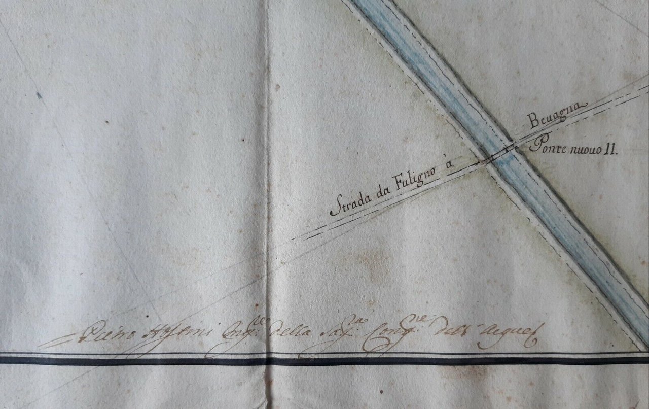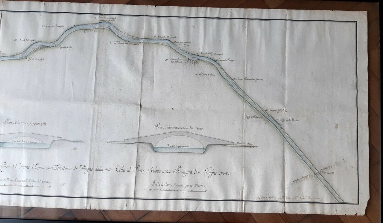 MAPPA ESATTA DEL CORSO DEL FIUME TOPINO NEL TERRITORIO DI FULIGNO DALLA DETTA CITTA' AL PONTE NUOVO VERSO BEVAGNA 15 GIUGNO 1746