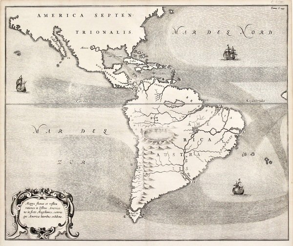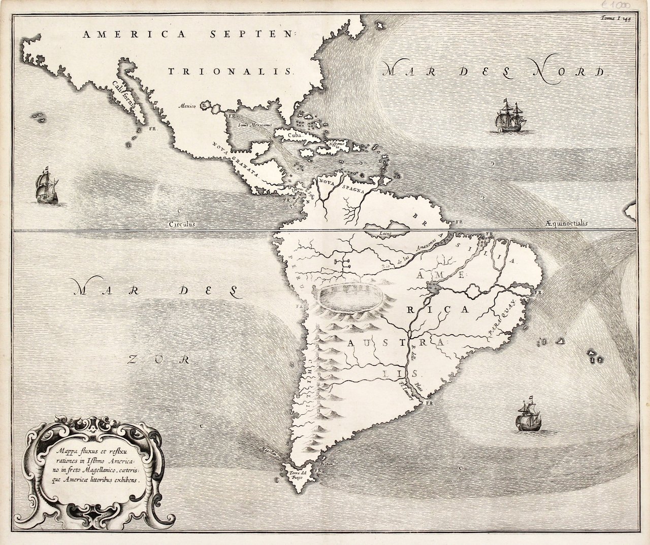 Mappa fluxus et refluxu rationes in Isthmo America no in Freto Magellanico, Caeteris que Americae Littoribus exhibens. <BR><BR> <BR>