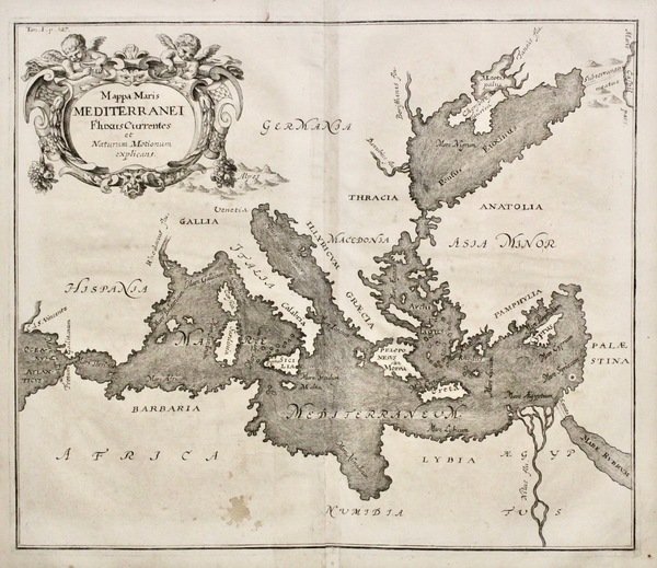 Mappa Maris Mediterranei, fluxus currentes et naturam motionum explicans. <BR> <BR>