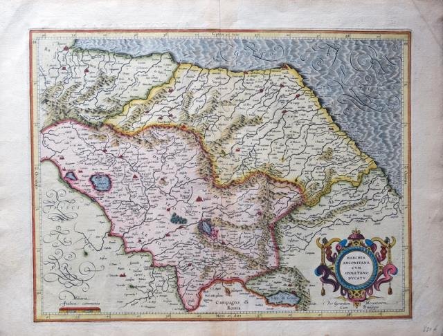 Duisburg, 1589 circa. Dall' “Atlas” del Mercatore (che si compone di tre parti, tutte edite a Duisburg tra il 1585 ed il 1595 con testo latino al verso) incisione in rame, coloritura d’epoca, cm 35 x 45,8 (alla lastra). Testo latino al verso, indice della prima edizione di Duisburg. Esemplare a pieni margini e in bella coloritura, buono lo stato di conservazione.