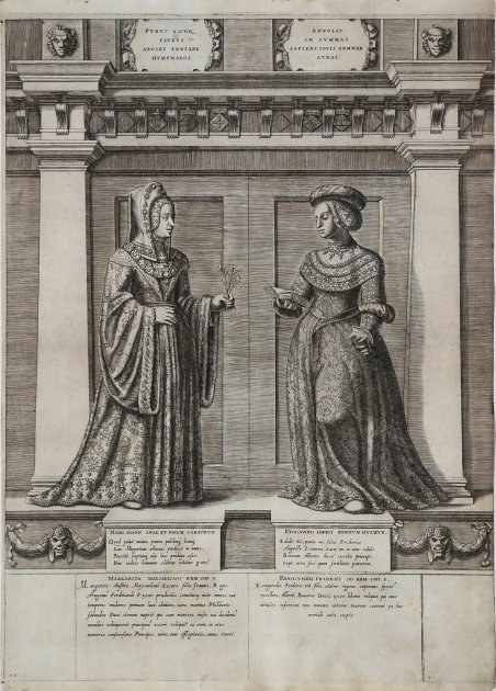 Ritratto di Margherita d'Aragona e Cunegonda di Baviera. Acquaforte e bulino, circa 1557, priva di firma. Bellissima prova, impressa su carta vergata coeva, con margini, in buono stato di conservazione. La tavola appartiene alla celebre serie ' Francisci Tertii Bergomatis Serenissimi Ferdinandi Archiducis Austriæ Ducis Borgundiæ Comitis Tirolis Etc. Pictoris Aulici ad Invictiss Caesarem Maximilianum II. Romanorum Imp. Semper Augustum. Austriacæ Gentis Imaginum ' incisa da Gaspare Oselli dai disegni di Francesco Terzi. ' ' Nella serie, suddivisa in cinque parti, ognuna preceduta da frontespizio, sono raffigurati, a bulino, a figura intera, 74 membri della casa d'Austria accompagnati da didascalie esplicative sulla vita dei singoli personaggi e spesso anche da raffigurazioni simbolico-allegoriche. “La raccolta ' Austriacae gentis imagines ' è composta da una serie di ritratti, in tutto 57 tavole, più la pagina finale. ' ' Nella serie sono rappresentati settantaquattro membri della famiglia degli Asburgo a figura intera. I personaggi sono inseriti, come statue, in complesse strutture architettoniche e indossano ricche vesti: ".si ammira un bizzarro e magnifico innesto di sontuosi drappi, d'armature, e di emblemi.". Ai lati delle nicchie che accolgono detti personaggi emergono scene allegoriche, mascheroni e altri fregi decorativi. Gian Francesco Terzi o Terzio, pittore bergamasco, è l'ideatore dei soggetti e nell'eseguire i disegni, ha fatto uso di diversi modelli sia pittorici che scultorei, ispirandosi principalmente alle sculture in bronzo che attorniano e adornano il cenotafio dell'imperatore Massimiliano I nella Hofkirche di Innsbruck. Alcuni ritratti riproducono fedelmente le statue bronzee di Innsbruck, altri si differenziano, Il Terzi realizzò l'opera per dimostrare la propria riconoscenza agli Asburgo, a quell'epoca grandi mecenati delle arti e famiglia per la quale aveva lavorato per molto tempo. I soggetti sembrano a prima vista molto simili tra loro; tuttavia, ad uno sguardo attento rivelano ciascuno una propria peculiarità. Sono opere senza dubbio di grande valore artistico ma anche e soprattutto storico, dato che raffigurano gli appartenenti ad una delle casate europee che segnarono la storia dell'epoca” (cfr. Streliotto, ' Gaspar ab Avibus incisore cittadellese del XVI secolo, pp. 44). Bibliografia G. Streliotto, ' Gaspar ab Avibus incisore cittadellese del XVI secolo, pp. 44-126; S. Seccareccia, ' La serie delle "Austriacae gentis Imagines" di Gaspare Osello ' (prima parte), in "Rassegna di Studi e di Notizie", Vol. XXII, a. XXV, Milano 1998, pp. 403-420 n. 1-10, figg. 1-10; S. Seccareccia, ' La serie delle "Austriacae Gentis Imagines" di Gaspare Osello ' (seconda parte), in "Rassegna di Studi e di Notizie", Vol. ' XXIII, a. XXVI, Milano 1999, pp. 179-222; Michael Bury in “Print Quarterly” XXIX 2012, p. 420; Paisey 2002, ' Catalogue of German printed books to 1900 ' (375). Portrait of Margaret of Aragon and Cunegonda of Bavaria. Etching and engraving, ca. 1557, unsigned. Beautiful proof, impressed on contemporary laid paper, with margins, in good condition. The plate belongs to the famous series ' Francisci Tertii Bergomatis Serenissimi Ferdinandi Archiducis Austriæ Ducis Borgundiæ Comitis Tirolis Etc. Pictoris Aulici ad Invictiss Caesarem Maximilianum II. Romanorum Imp. Semper Augustum. Austriacæ Gentis Imaginum ' engraved by Gaspare Oselli from the drawings of Francesco Terzi. ' ' The series, divided into five parts, each preceded by a frontispiece, features full-length engraving of 74 members of the House of Austria accompanied by explanatory captions about the lives of individual characters and often also symbolic-allegorical depictions. The collection ' Austriacae gentis imagines ' consists of a series of portraits, 57 plates in all, plus the final page. ' ' Seventy-four full-length members of the Habsburg family are depicted in the series. The figures are inserted, like statues, into complex architectural structures and wear rich robes. On the sides of the niches that accommodate said figures emerge allegorical scenes, masks and other decorative friezes. Gian Francesco Terzi or Tertius, a painter from Bergamo, is the originator of the subjects, and in executing the designs, he made use of various models, both pictorial and sculptural, inspired mainly by the bronze sculptures that surround and adorn the cenotaph of Emperor Maximilian I in the Hofkirche in Innsbruck. Some portraits faithfully reproduce the bronze statues in Innsbruck, others differ, Terzi created the work to show his gratitude to the Habsburgs, at that time great patrons of the arts and a family for whom he had worked for a long time. The subjects seem at first glance to be very similar to each other; however, on close inspection they each reveal their own peculiarities. They are works undoubtedly of great artistic value, but also and above all of historical value, since they depict members of one of the European dynasties that marked the history of the time. Bibliografia G. Streliotto, ' Gaspar ab Avibus incisore cittadellese del XVI secolo, pp. 44-126; S. Seccareccia, ' La serie delle "Austriacae gentis Imagines" di Gaspare Osello ' (prima parte), in "Rassegna di Studi e di Notizie", Vol. XXII, a. XXV, Milano 1998, pp. 403-420 n. 1-10, figg. 1-10; S. Seccareccia, ' La serie delle "Austriacae Gentis Imagines" di Gaspare Osello ' (seconda parte), in "Rassegna di Studi e di Notizie", Vol. ' XXIII, a. XXVI, Milano 1999, pp. 179-222; Michael Bury in “Print Quarterly” XXIX 2012, p. 420; Paisey 2002, ' Catalogue of German printed books to 1900 ' (375). Cfr.