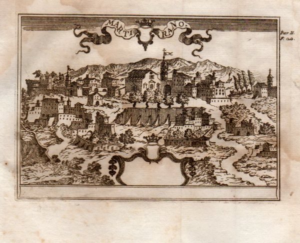 Incisione all’acquaforte, f. 13,5×18,5 cm. ca. In: PACICHELLI, Giovanni Battista – Il Regno di Napoli in prospettiva… Napoli, Stamperia Luigi Mutio