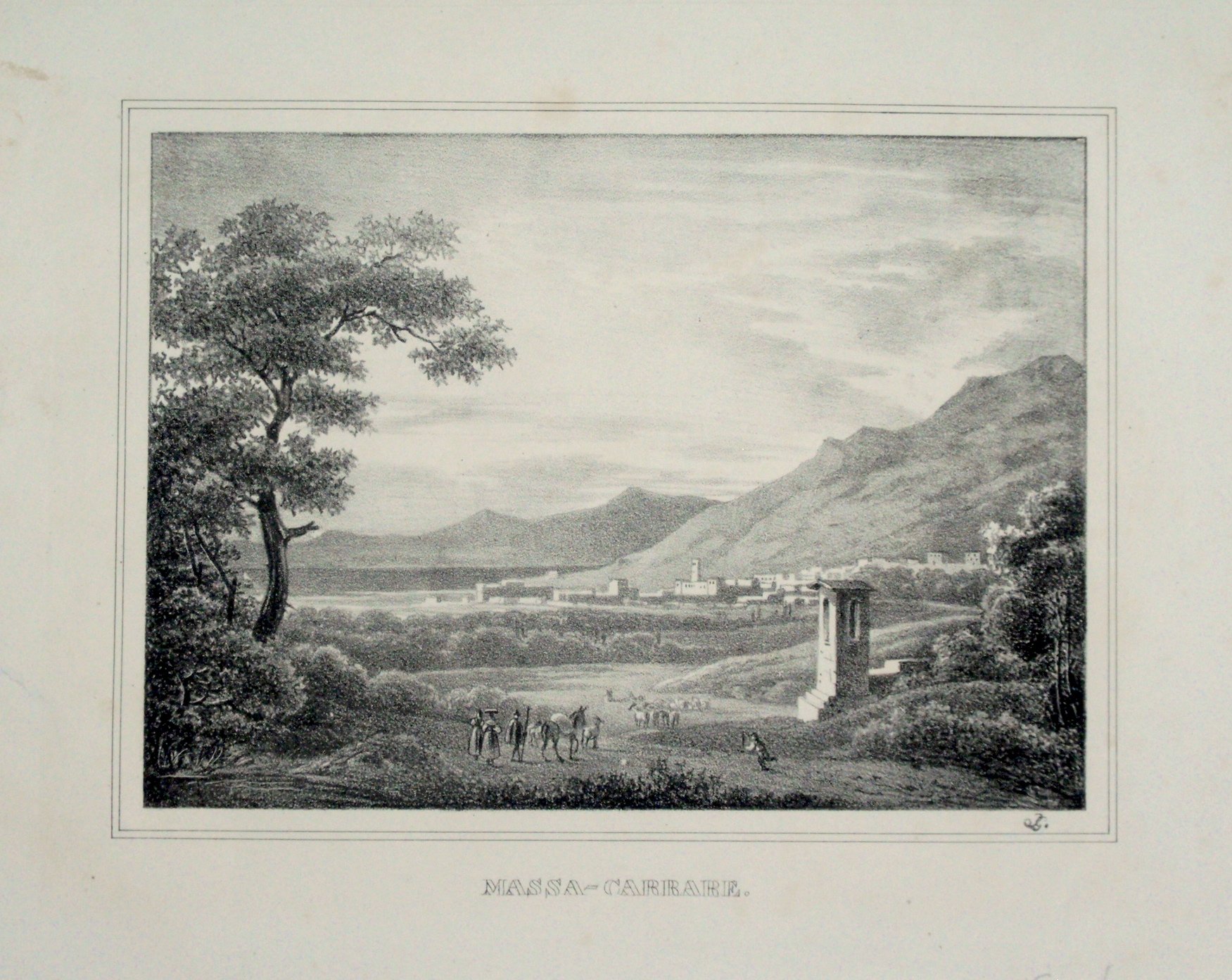 Litografia di mm 135x175 ad opera di un autore non identificato. Buon esemplare con qualche sporadica e leggera fioritura e alone di umidità all'estremità dei margini superiore e sinistro. <BR>