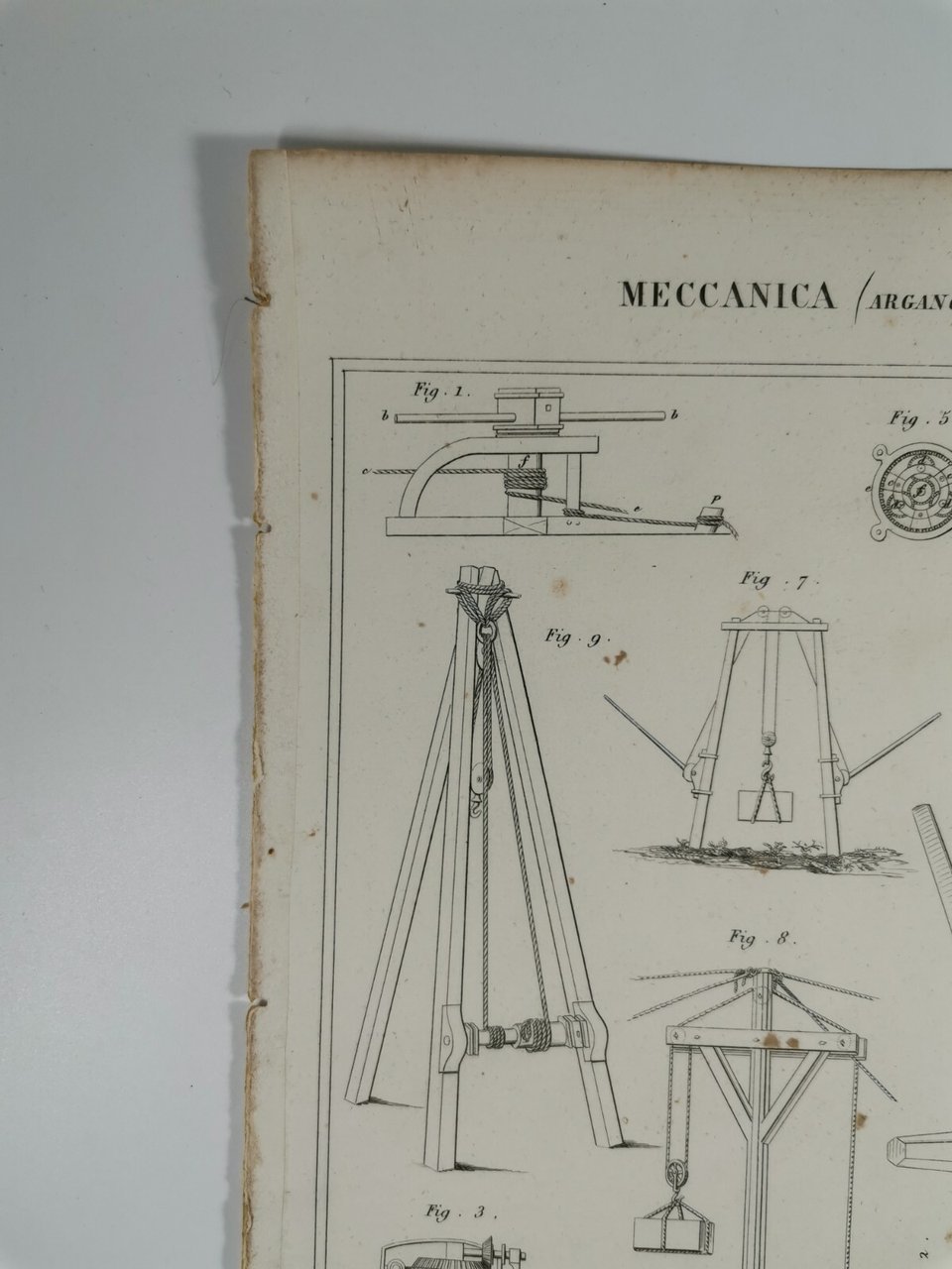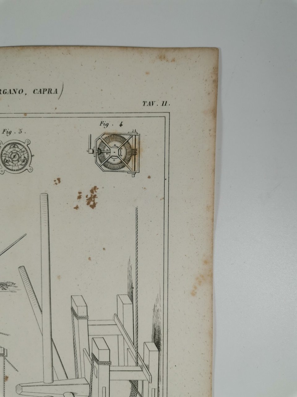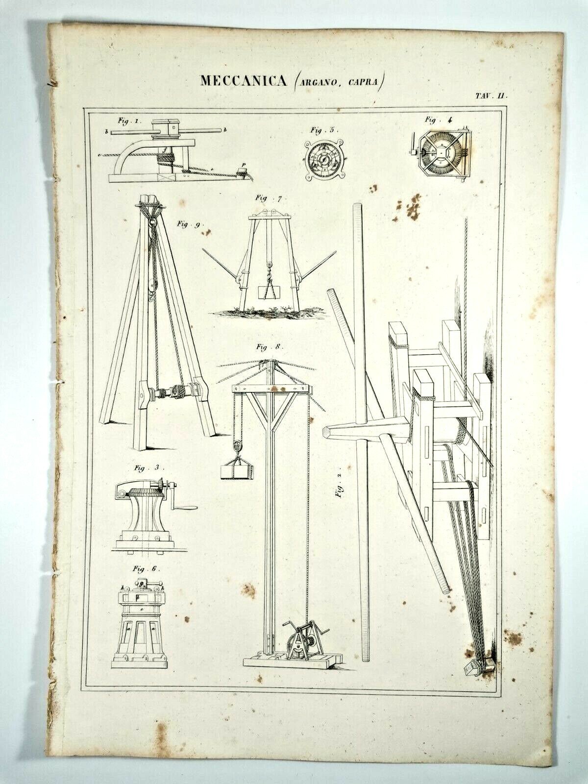 MECCANICA ARGANO CAPRA Incisione Stampa Rame 1866 Tavola Originale antica