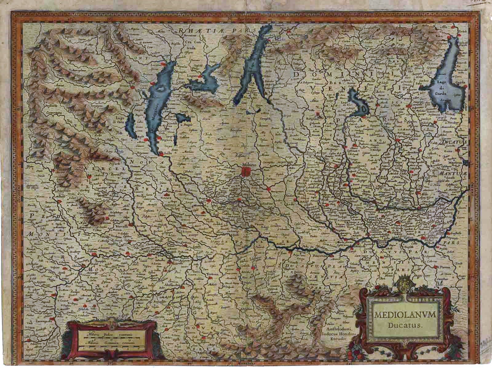 Carta raffigurante lo Stato di Milano e dei territori ad esso confinanti. Margine inferiore ridimensionato.Bibliografia: Arrigoni-Bertarelli n. 1022