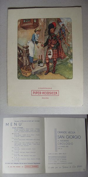 Menù Grande veglia San Giorgio al Ristorante OROLOGIO 1950 (Champagne PIPER - HEIDSIECK Reims)