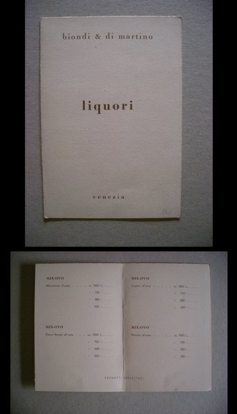Menù / listino prezzi "LIQUORI Biondi & di Martino. VENEZIA. Mix Ovo" Anni´30 / ´40