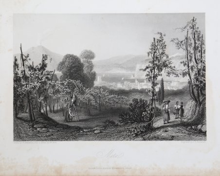 Veduta tratta da Italy, Classical, Historical and Pictoresque di Camillo Mapei, pubblicato a Londra nel 1856. L'opera contiene una serie di incisioni tratte da disegni dei più importanti pittori inglesi che visitano l'Italia nella prima metà del diciannovesimo secolo, quali: Harding, Prout, Brokedon, Leitch etc. Incisione in rame, in ottimo stato di conservazione. View taken from Italy, Classical, Historical and Pictoresque by Camillo Mapei, published in London during 1856. Copperplate, very good condition. Cfr.