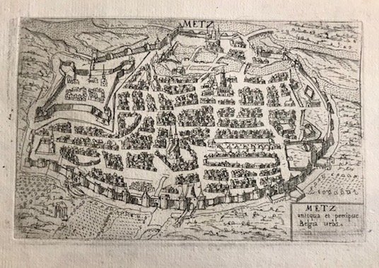 Incisione originale su rame (cm. 13x8,5 più ampi margini bianchi) impressa su carta vergellata. Tratta dall’opera ‘Nuova raccolta di tutte le piu illustri et famose citta di tutto il mondo’ pubblicata da Donato Rasicoti (o Rasciotti o Rascicotti). Esemplare in ottimo stato di conservazione. Molto rara. Francesco Valegio (1560 ca.-1650 ca.) operò quasi esclusivamente a Venezia come pittore, disegnatore, incisore, editore e mercante di stampe. La produzione artistica fu notevole: ritratti, soggetti storici e religiosi, illustrazioni per libri, carte geografiche, piante di città e incisioni di paesaggio. La sua opera calcografica più impegnativa è senz’altro la ‘Raccolta delle più illustri et famose città di tutto il mondo’ alla quale il Valegio contribuì con 112 incisioni mentre altre,fino al numero di 322, sono state eseguite da diversi incisori, tra cui molte da Martino Rota da Sebenico.