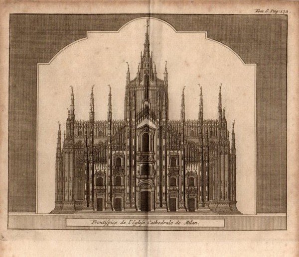 MILANO - "Frontispice de l'Eglise Cathedrale de Milan" dettagliata veduta del Duomo, visto frontalmente.
