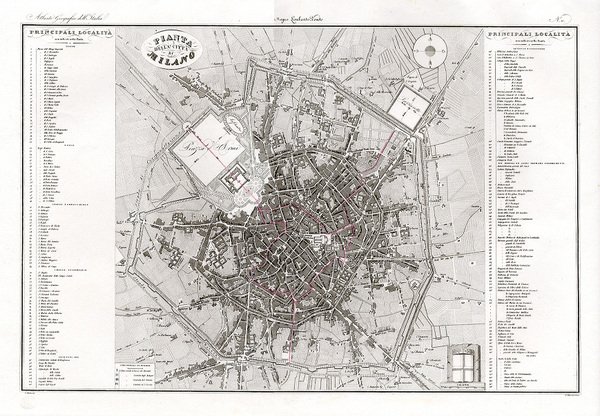 MILANO - Pianta della Città di Milano. A destra ed a sinistra "Principali Località ".